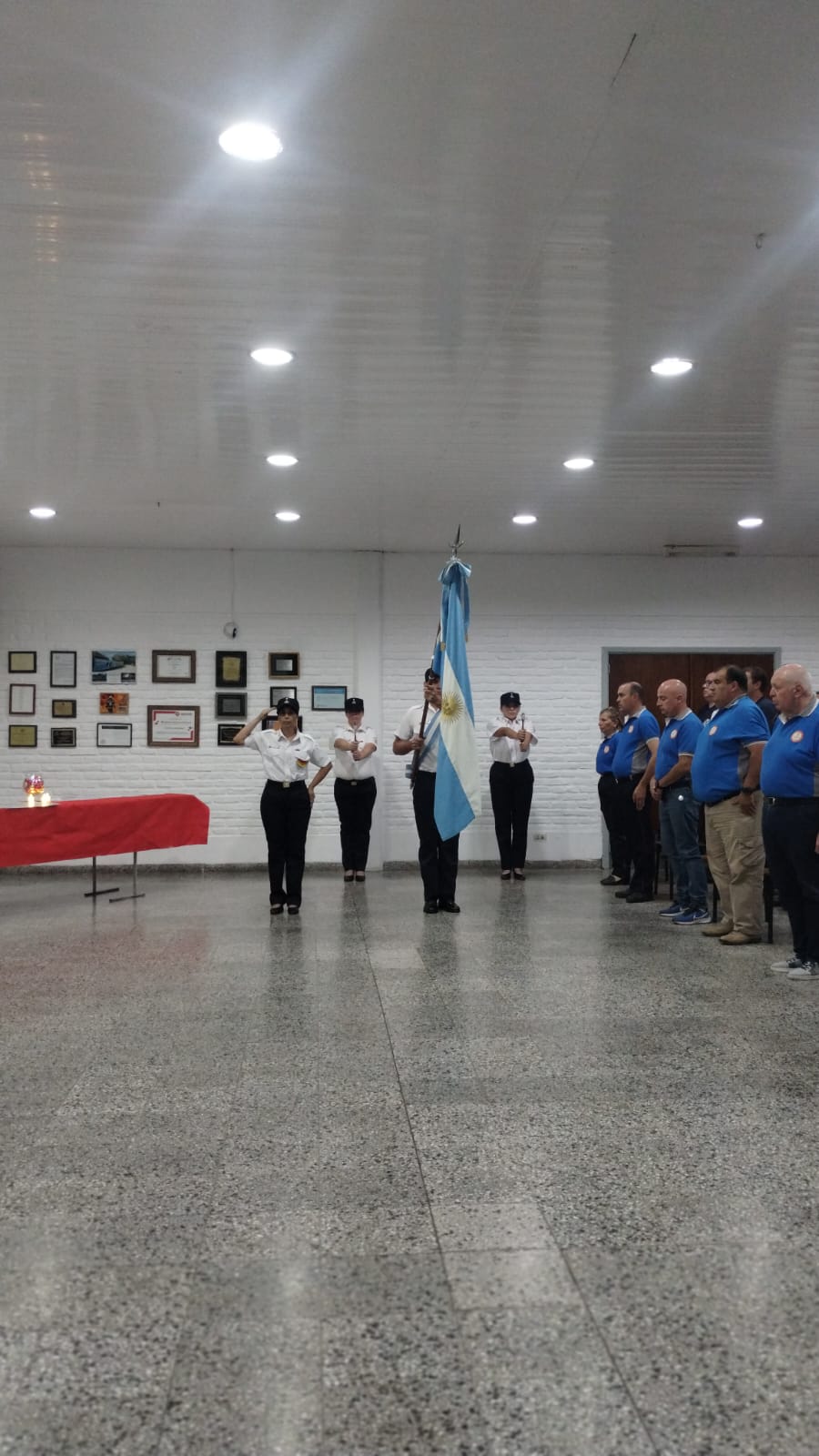 El sencillo pero emotivo acto contó con la presencia de los presidentes y jefes de cuerpo de las instituciones que prestaron colaboración, donde acompañados por el Pabellón Nacional se entonaron las estrofas de nuestro himno y el Presidente, el Cmdte. Gral. (R) Daniel Vicente, expresó unas sentidas palabras a los presentes.
