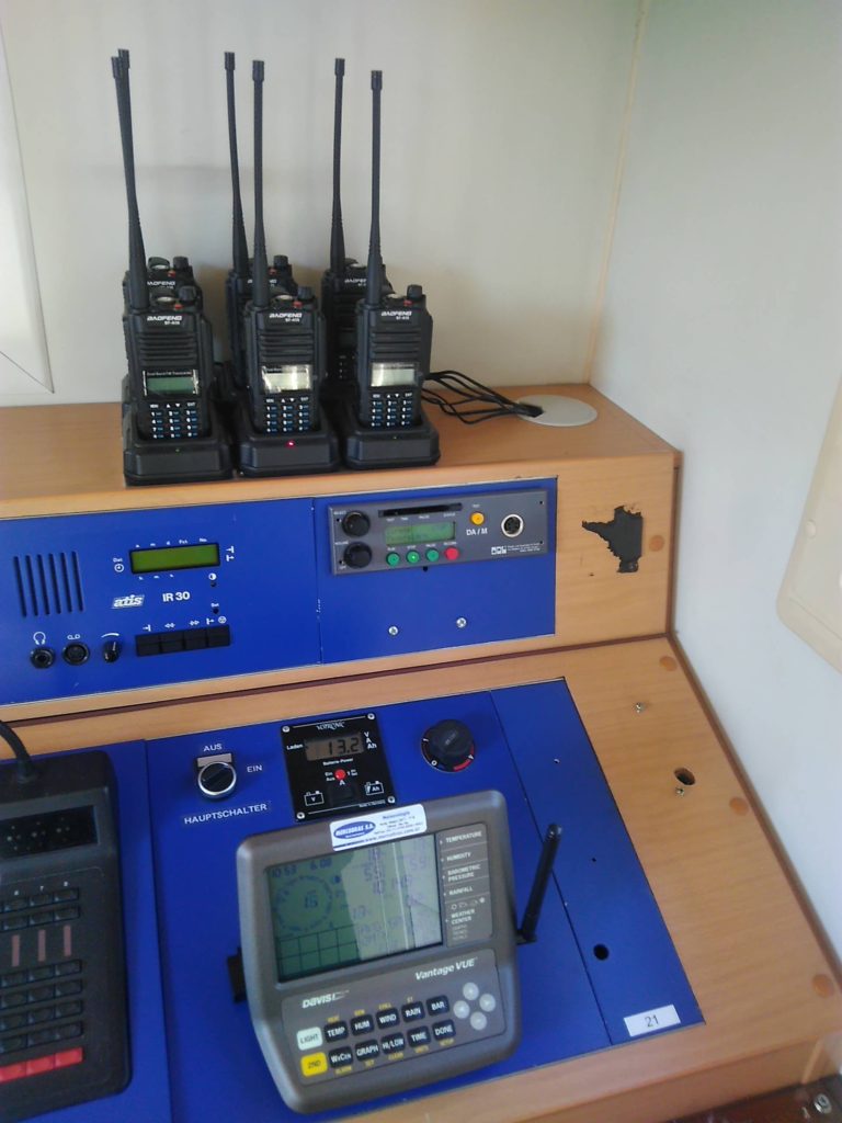 Actualmente la unidad cuenta con 2 bases de comunicaciones de VHF y UHF analógicas, y 6 handies que operan en las mismas bandas con grado de protección IP57. La unidad posee una torre de comunicaciones para 2 antenas elevadas a 6 metros sobre el nivel de la unidad y dispone de 4 antenas más para incorporar otros sistemas si fuese necesario.